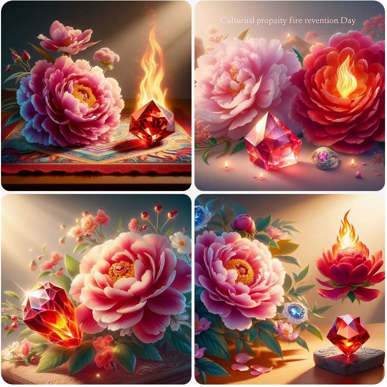 寒牡丹(カンボタン)も描かれていた。この花の花言葉が “天才” だということは、最近知った。文化財の持つ知恵や美しさを象徴するにはぴったりだ。AIが描くその美しい寒牡丹は、私の心に静かな感動をもたらした。