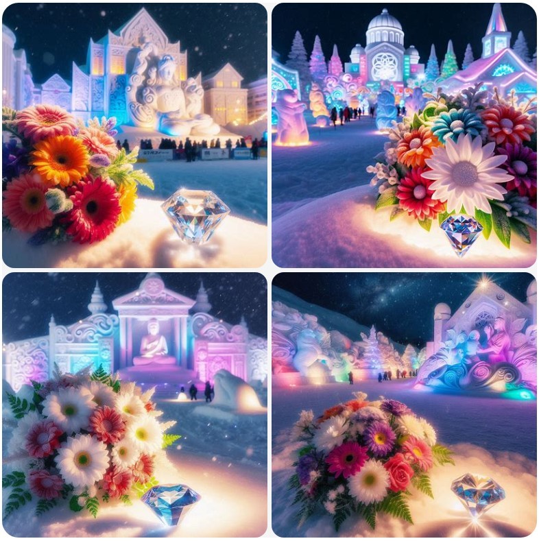 先日、さっぽろ雪まつりの絵をAIに描いてもらった。こんな時代になったんだなと感心する。どのように雪の彫刻やイルミネーションを表現するのか、期待を膨らませていた。