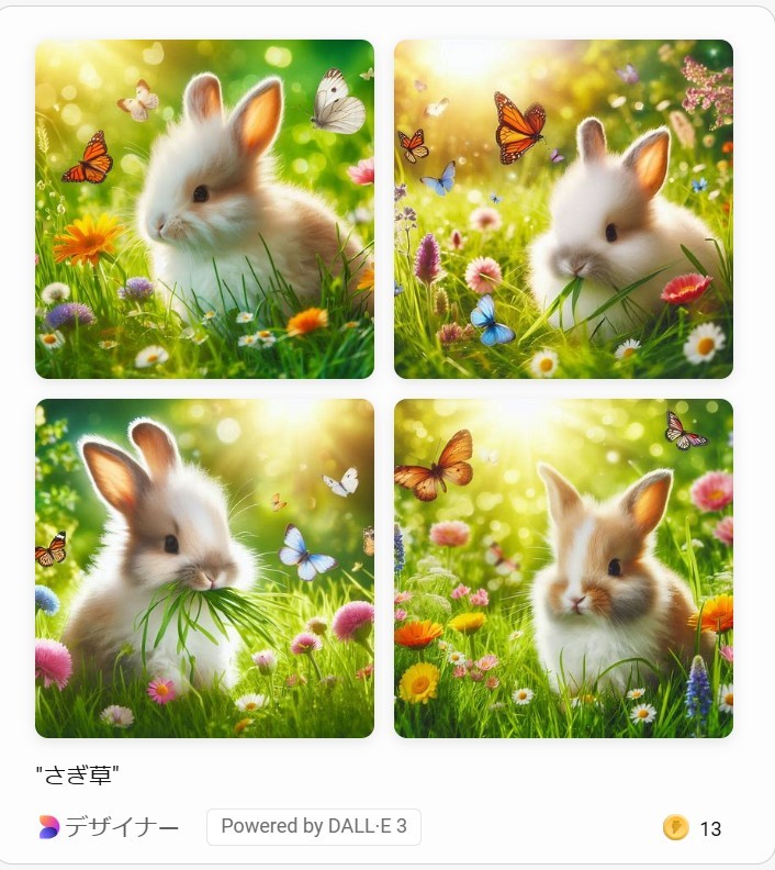AIが描いた絵には、ウサギに蝶が描かれていました。