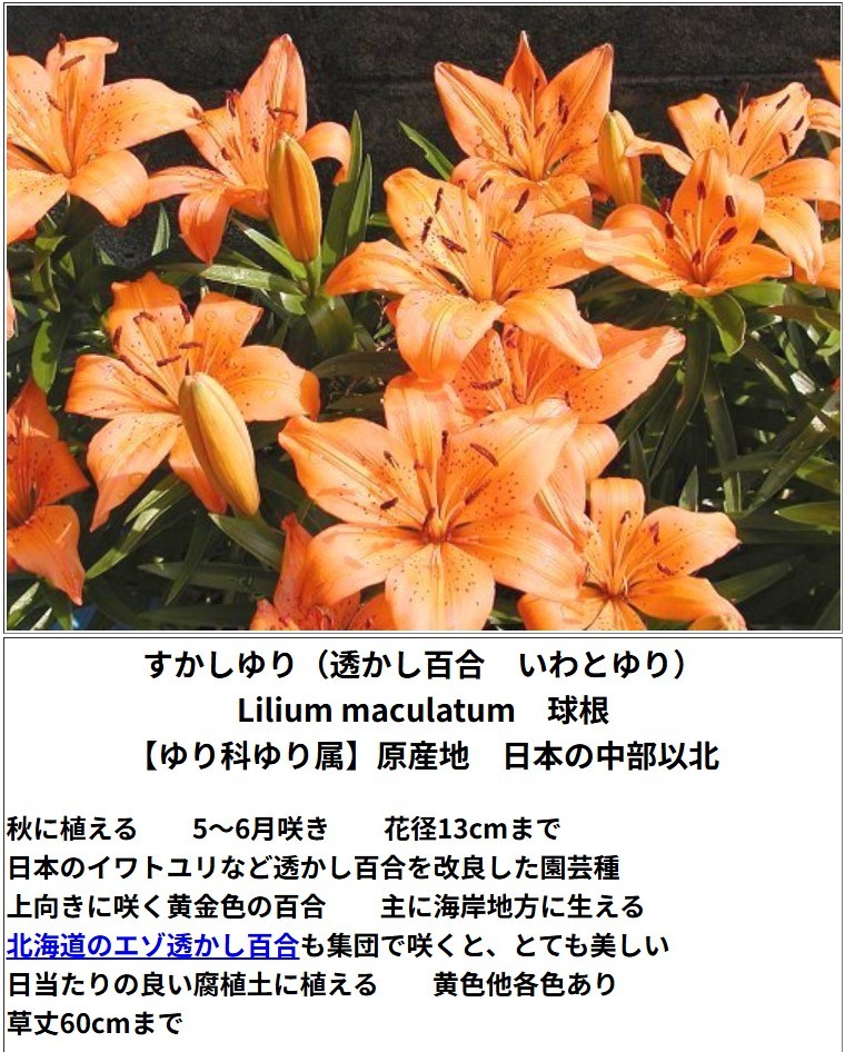 背景には青空が広がり、そこにすかしゆりが咲いている。