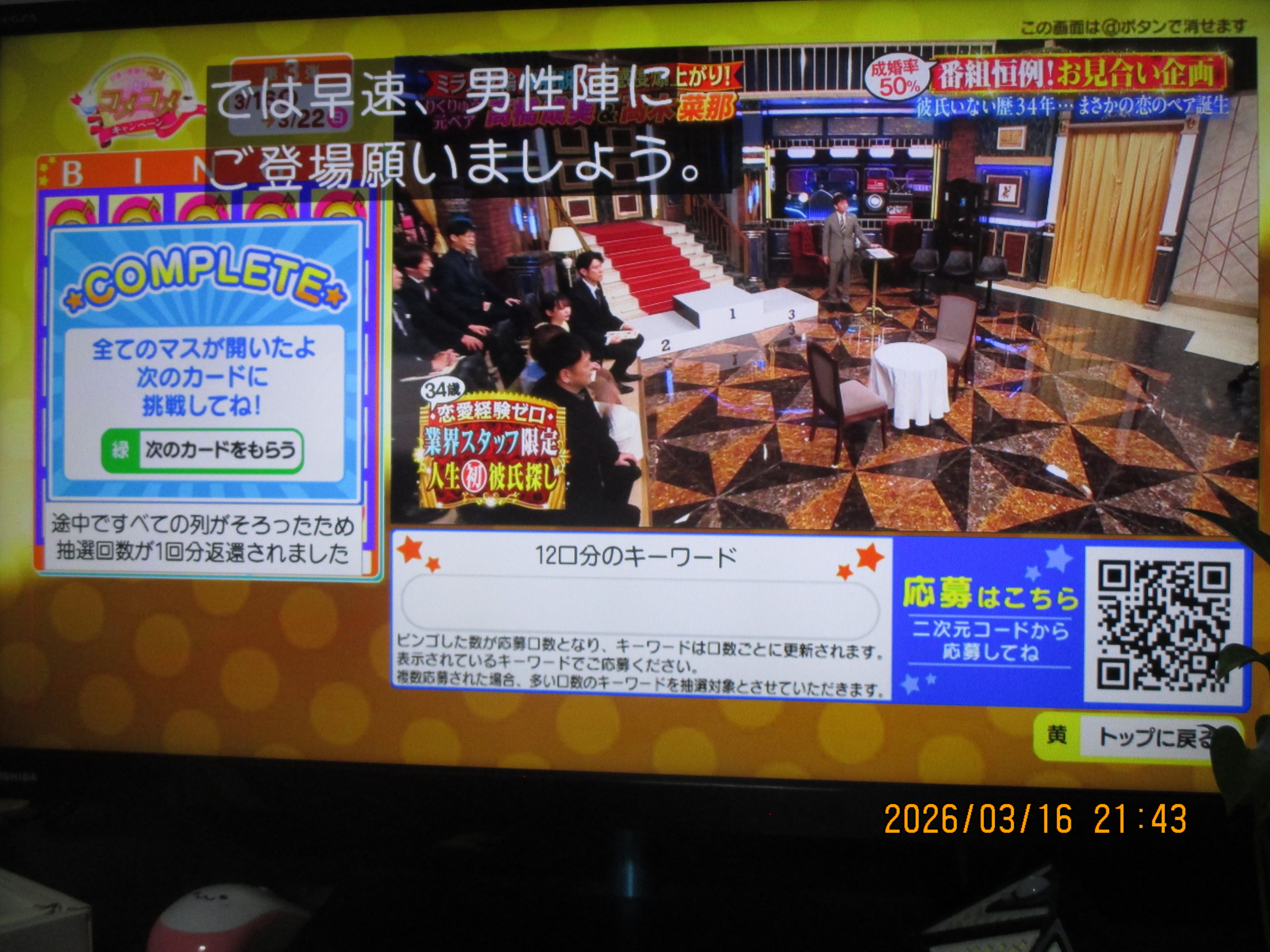 次の現象が発生 キーワードが出ない 東芝REGZA 12口分のキーワード画面URL http://nku.sakura.ne.jp/2026/etc/2.JPG