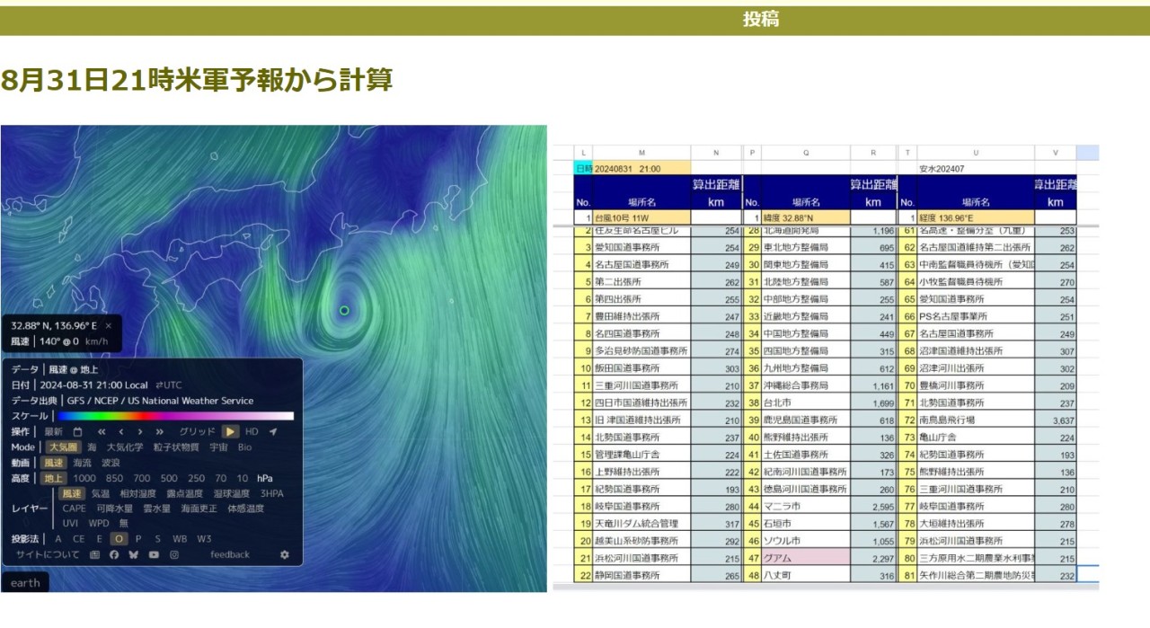 8月31日21時米軍予報から計算