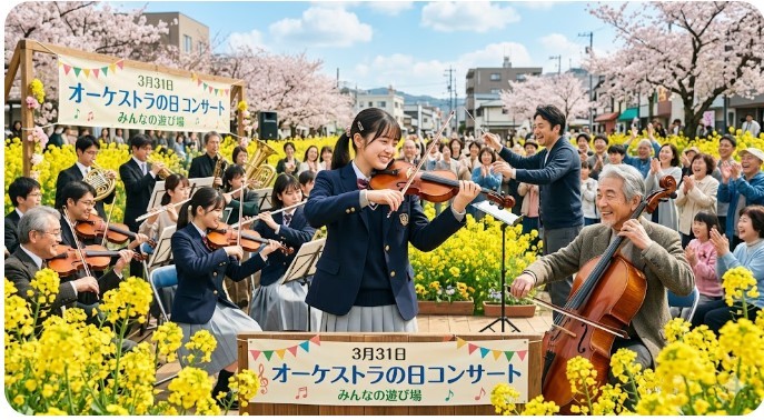 オーケストラの日に関連した絵を、AIによって新たに生み出すことができたのは、意外な収穫だった。音楽といえば、和音の重なりや楽器の調和が大切だが、絵もまた、色や形が調和しなければならない。これからも色々なAIを使って、さまざまな表現を試していきたい。今日の経験が、次の創作のインスピレーションになることを期待している。