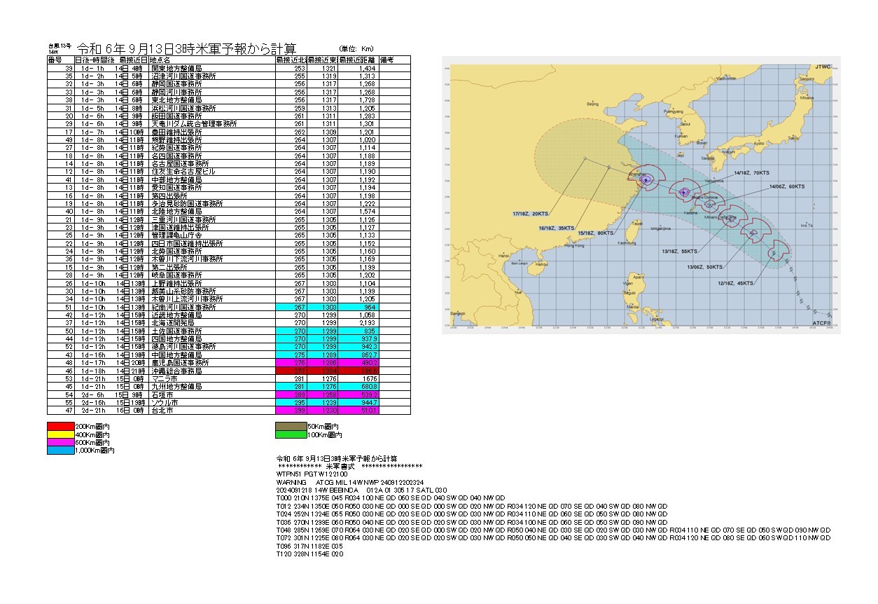 令和 6年 9月13日3時米軍予報から計算