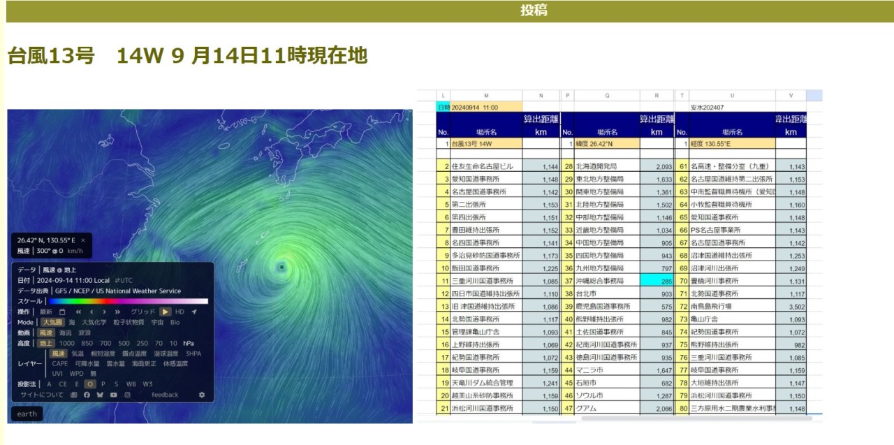 台風13号 14W 9 月14日11時現在地