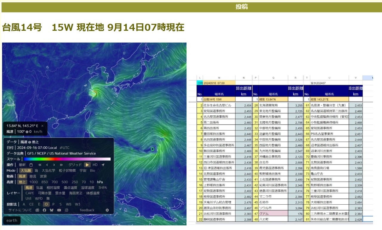 台風14号 15W 現在地
