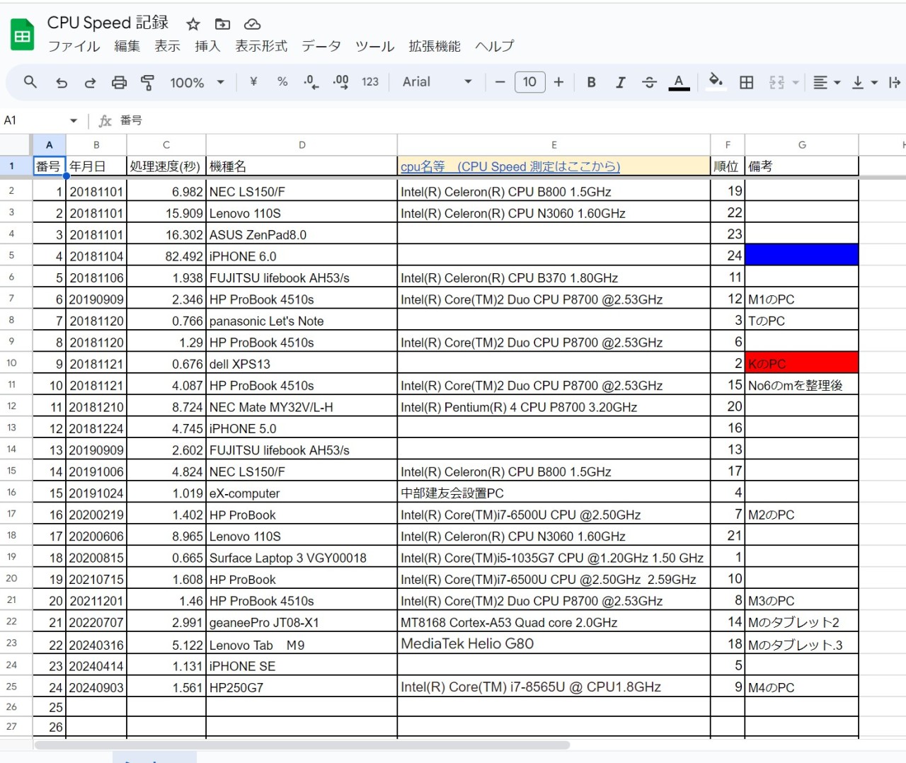 今日、書場のPCのスピード記録を見つけた。