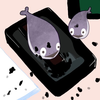 サカバンはおさかななので、呑気に墨を落としに出かけます。