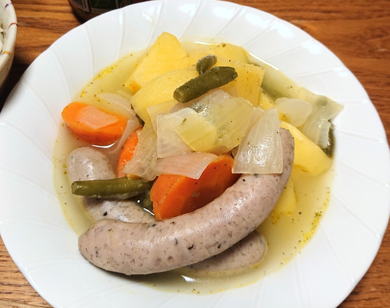 どうしても白ソーセージ食べたかったので、野菜と煮込む。