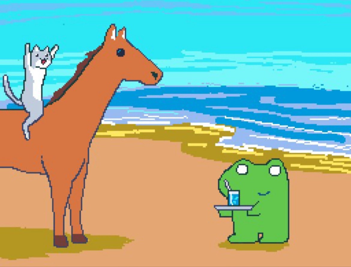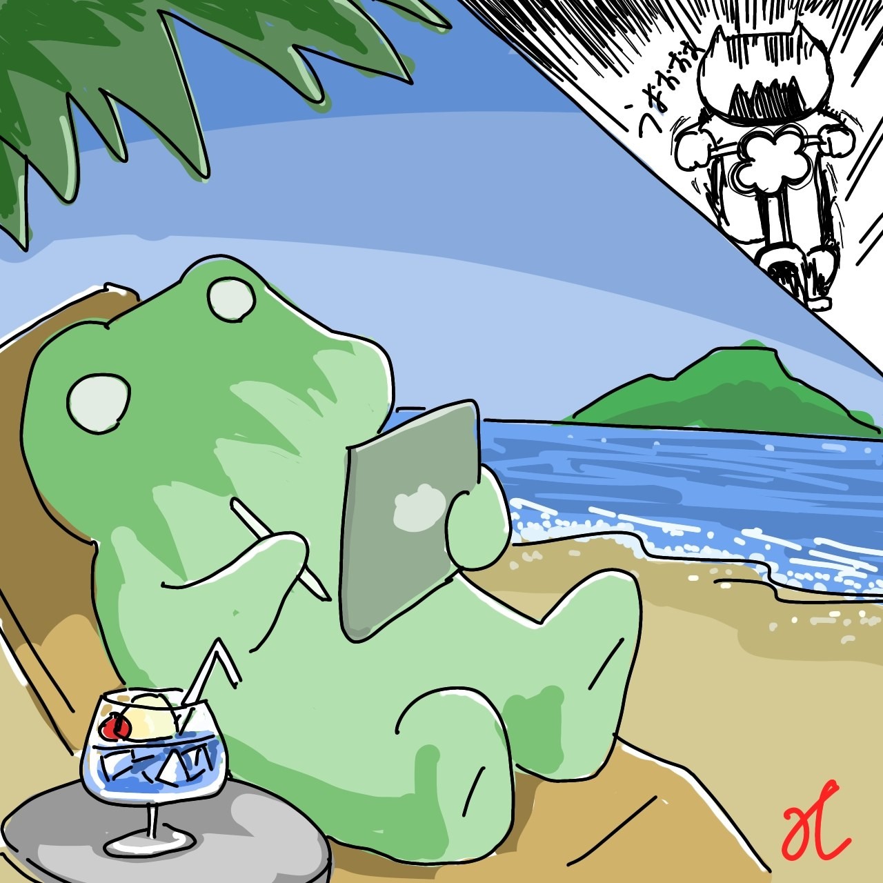 スゲーでっかいカエルさんがゲームを作ってくれたのが嬉しくて、確定申告のラストスパートをそっちのけで描いたイラスト