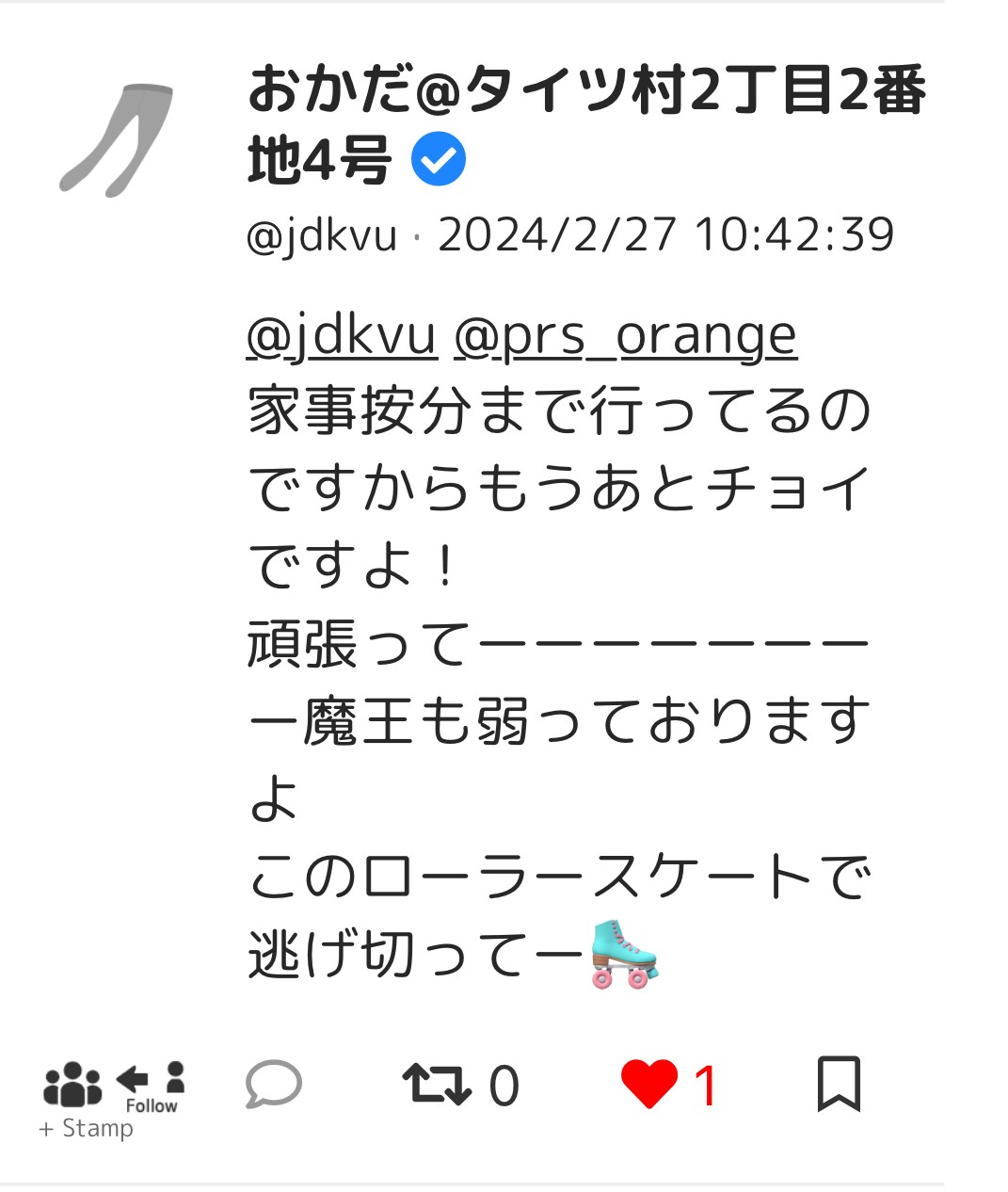 (ずっと勘違いしていたのですが、ローラースケートの差し入れを他のタイツさんと勘違いしていました。おかださんにも勘違いしてしまった方にも申し訳ありません)