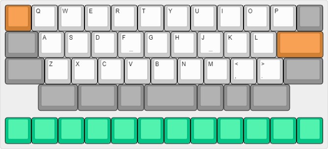 つまり、キーボードの左右バランスというのはアルファキーのみではなくモデファイアキーと組み合わさって完成されるという当たり前の結論であり、所謂『QWERTY配列』から脱却しない(アルファキーのレイアウトを修正しない)のであれば、モデファイアキーでバランスを取るしかないと言える。