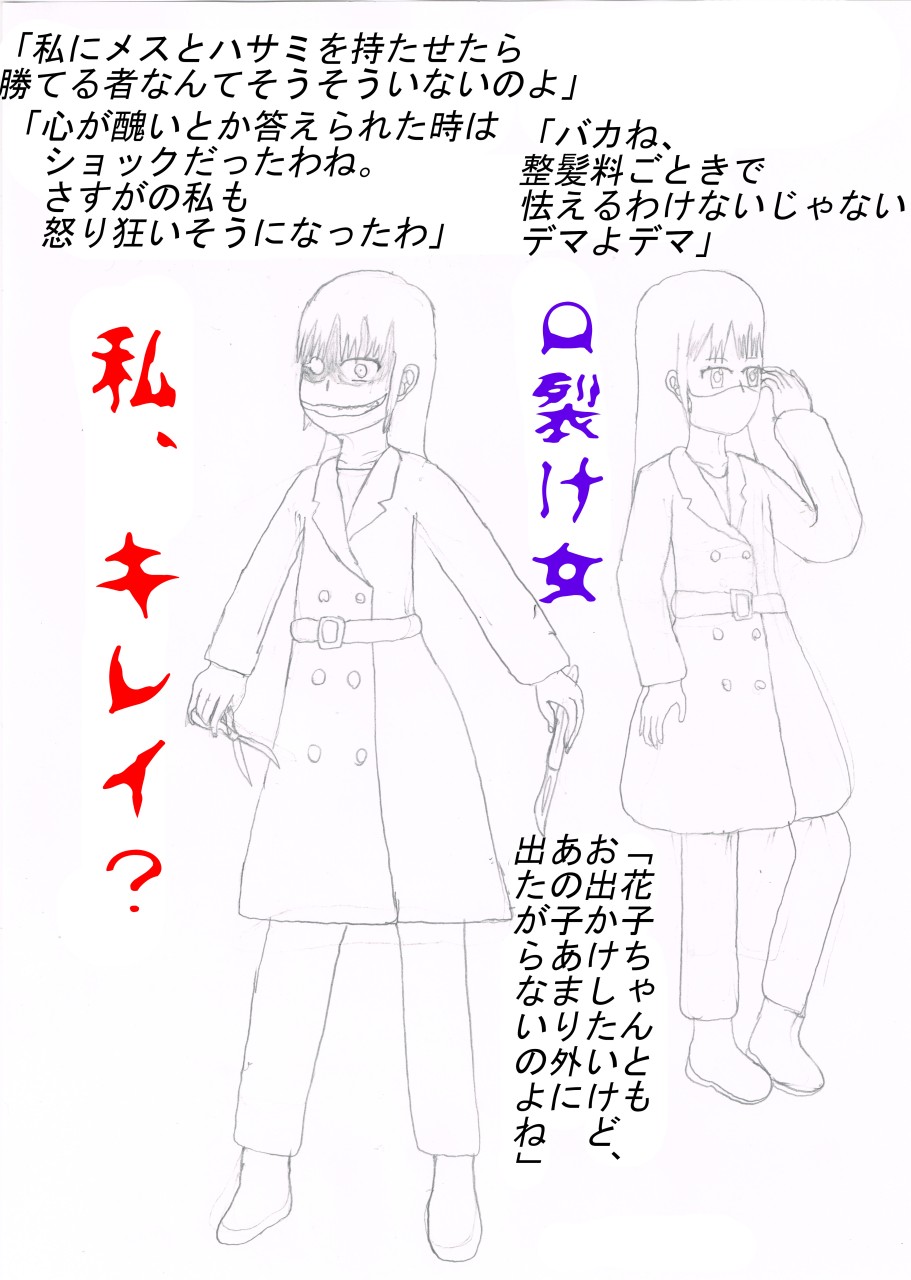 元々は手術で口を切り裂かれた女性がマスクをつけ、道行く人に自分が綺麗か訊ね、気に入らない返答をした相手を俊足で追いかけ回し、襲い掛かる都市伝説だった。