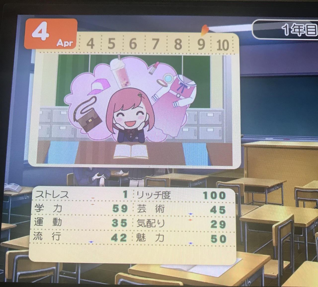 ガールズサイドは初プレイですが、所々に懐かしい要素もあって、ときメモってこんな感じだったなと思い出しました。占いで運気の上下が分かったり、アルバイトが出来るのは面白そうですね。