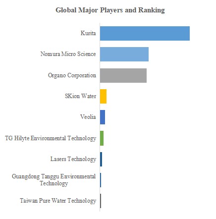 QYResearchのトップ企業研究センターによると、半導体製造用超純水システムの世界的な主要製造業者には、Kurita、Nomura Micro Science、Organo Corporation、SKion Water、Veoliaなどが含まれている。2023年、世界のトップ3企業は売上の観点から約86.0%の市場シェアを持っていた。