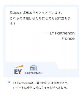 「早速のお返事ありがとうございます。これらの情報は私たちにとても役に立ちます!」