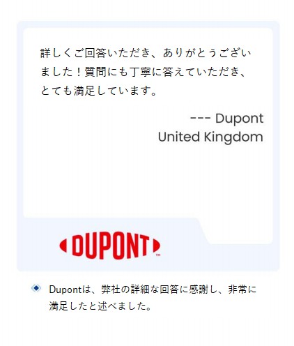 「詳しくご回答をいただき、ありがとうございました!質問にも丁寧に答えていただき、とても満足しています。」