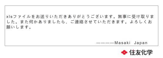 「xlsファイルをお送りいただきありがとうございます。無事に受け取りました。