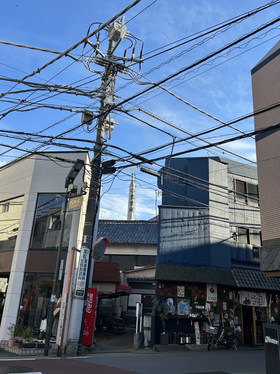 銭湯の煙突と街の風景がグッとくる