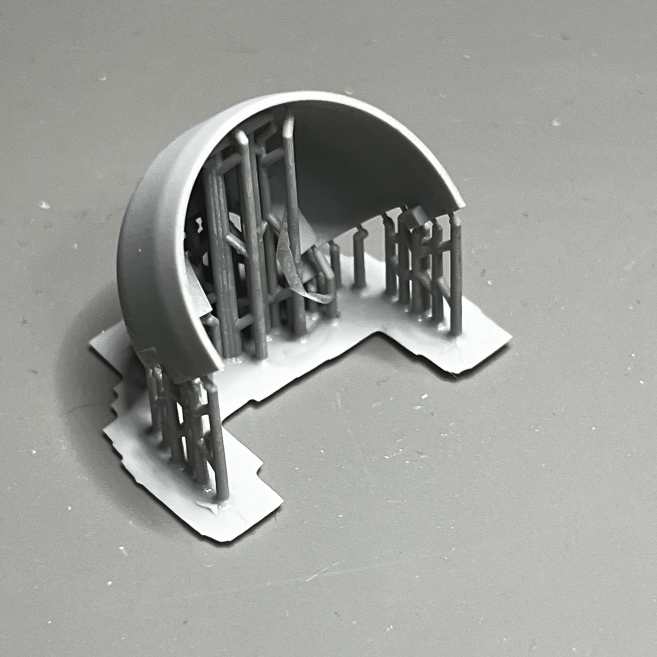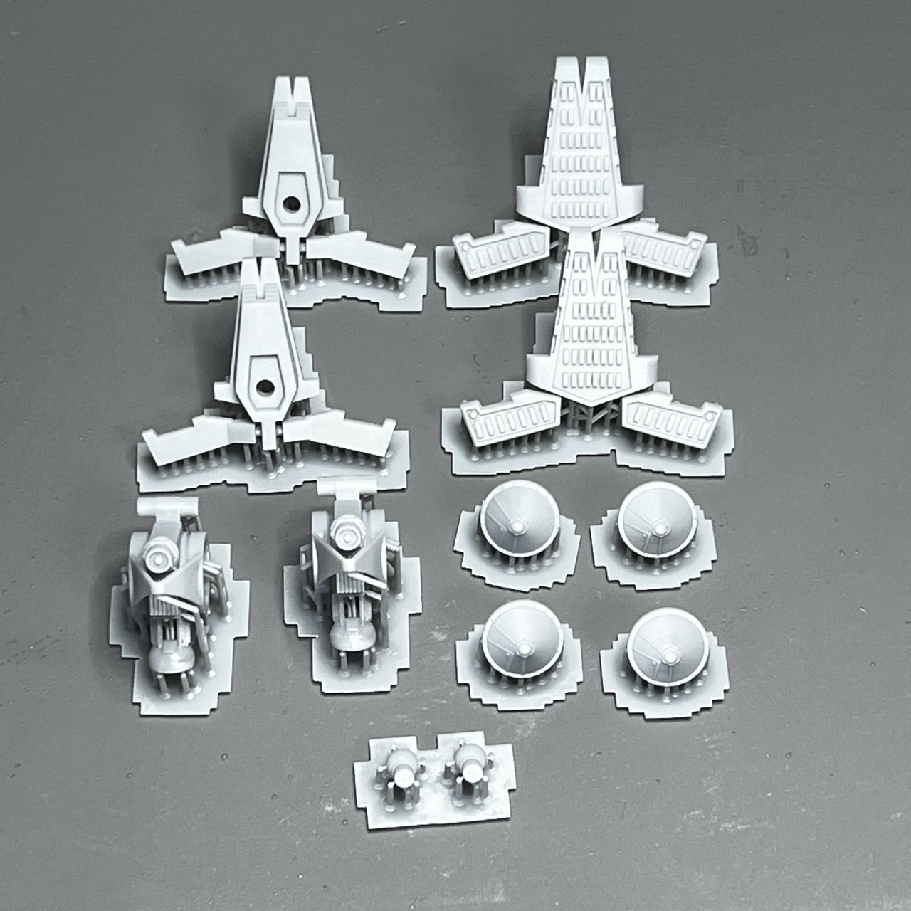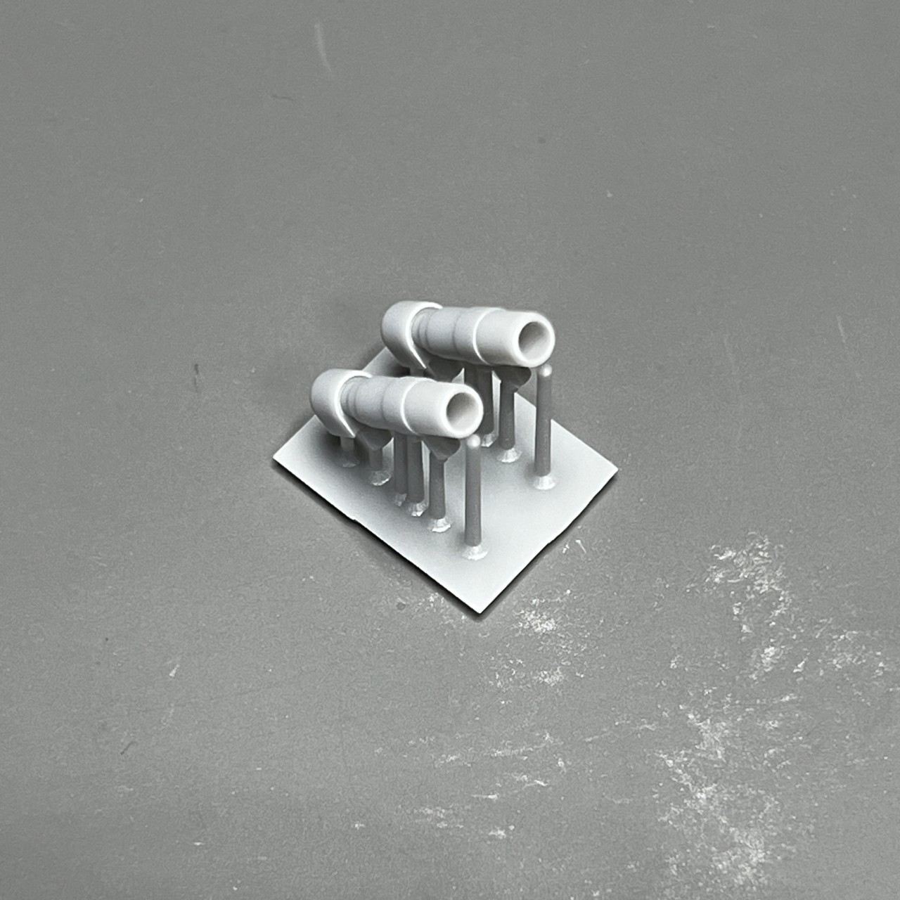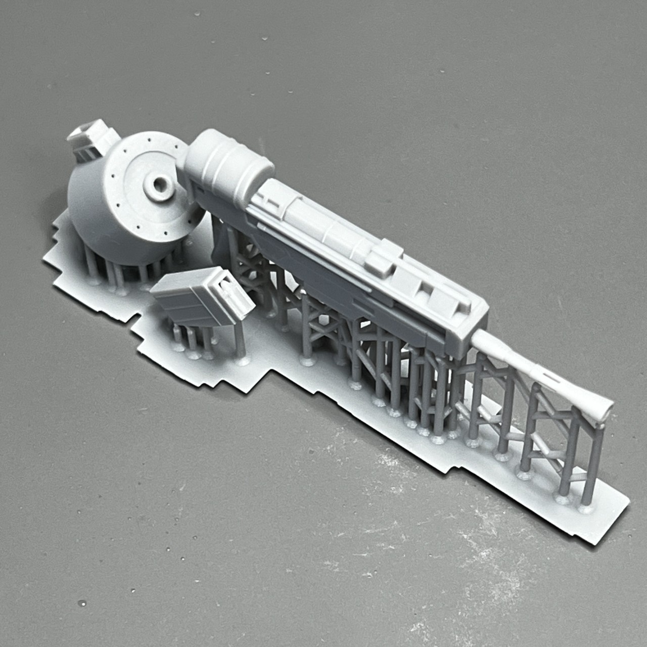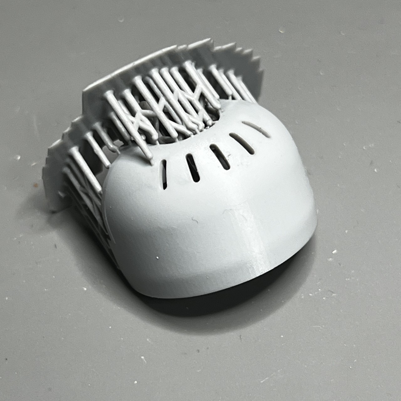 両肩にあるエンジン部は肩パーツと一体型。プラキット:A8/A9と差し替えです。ユニットがかなり重いので印刷中落下防止のためサポートが多めになっています。梁パーツとの接続ポッチがサポートの中に埋もれているので切り離しは慎重に行ってください。(2)
