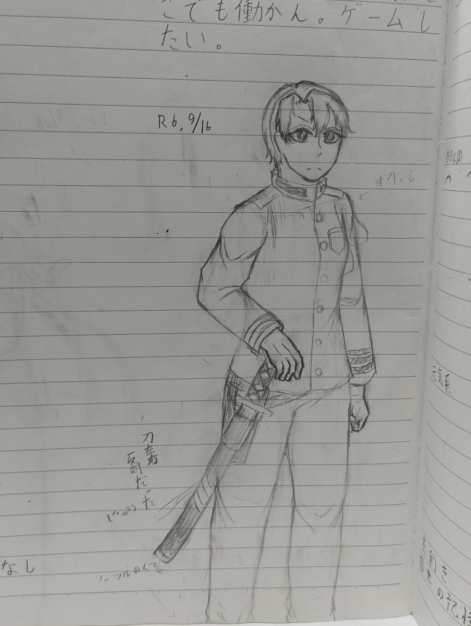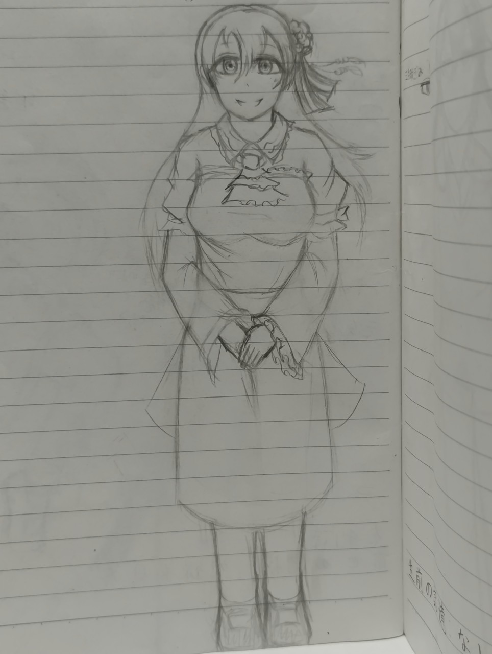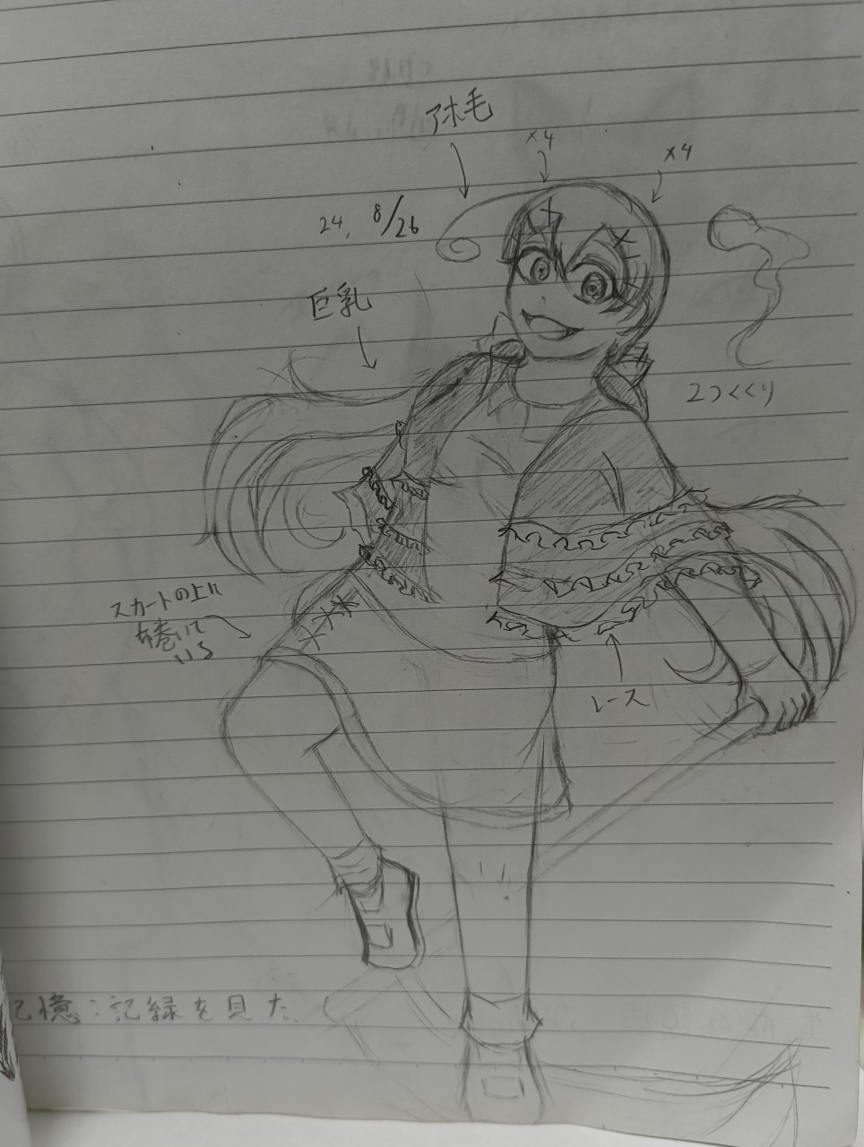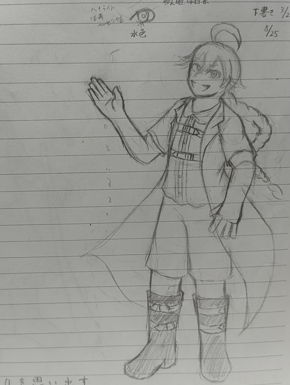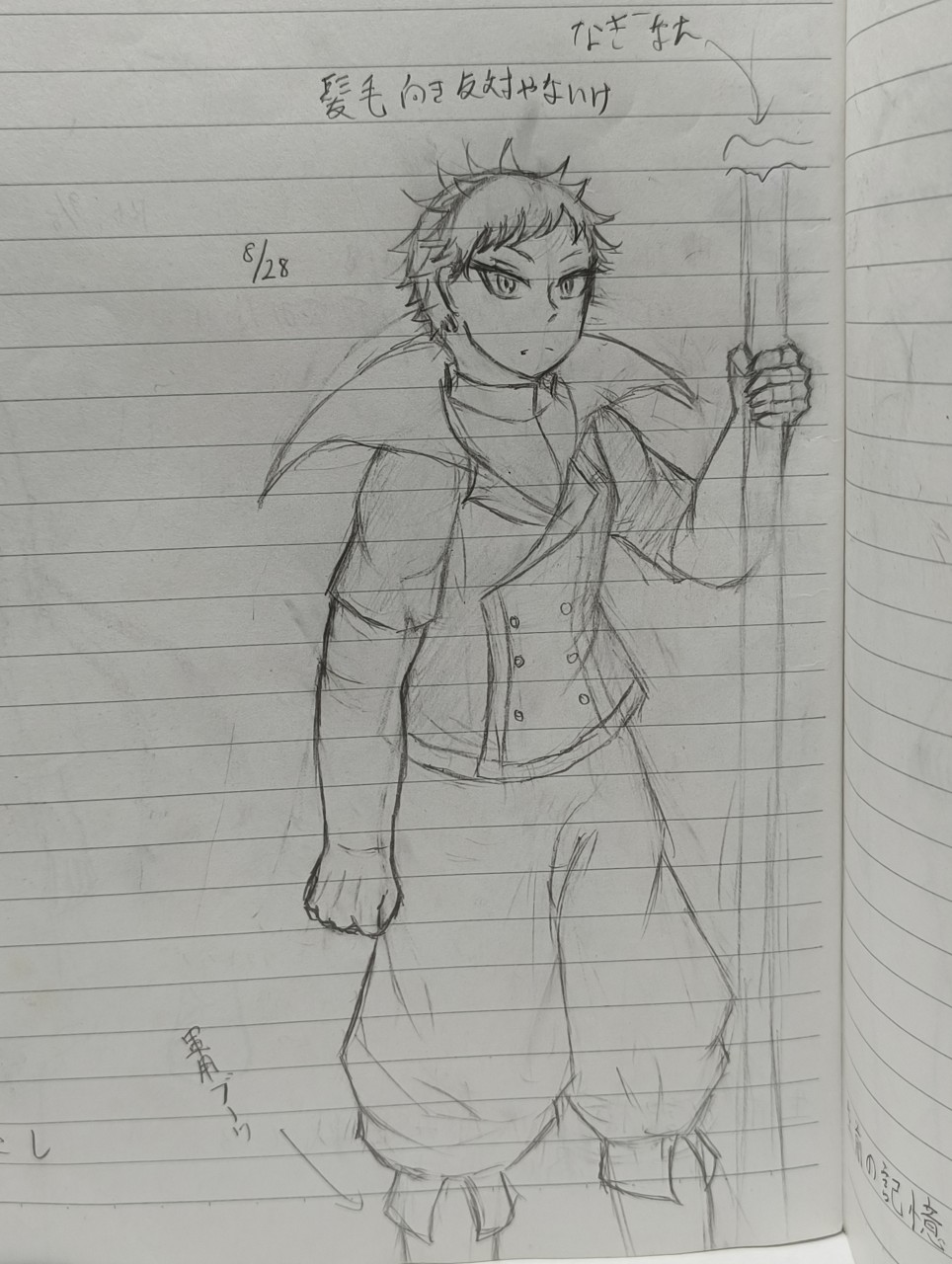 暫く全体絵を描けそうにないので、先にアナログの原案載せちゃいます。哀しいことに汚れている部分あり