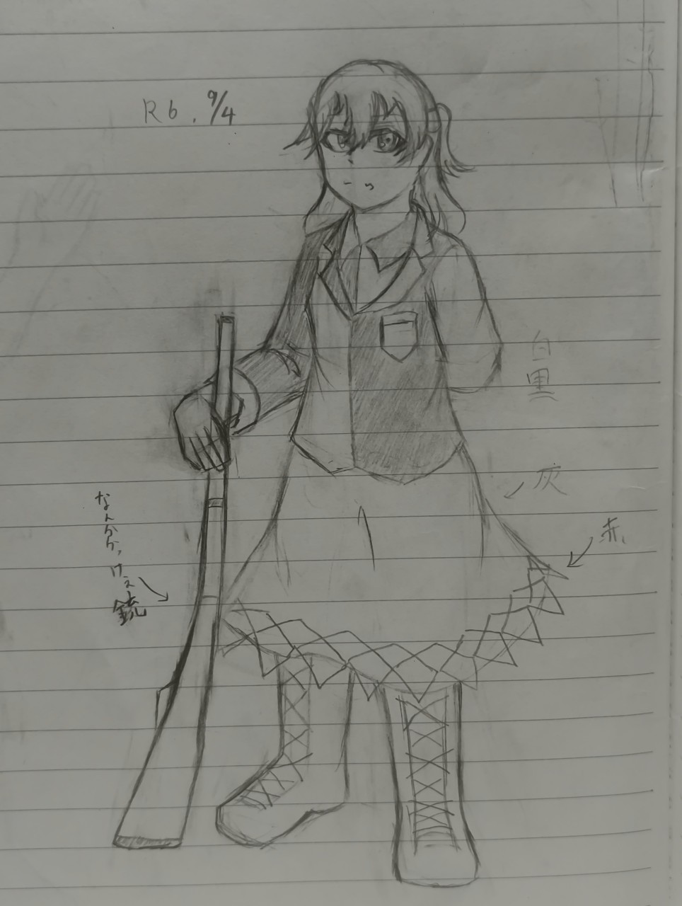 暫く全体絵を描けそうにないので、先にアナログの原案載せちゃいます。哀しいことに汚れている部分あり 黒4 # 白4 # …