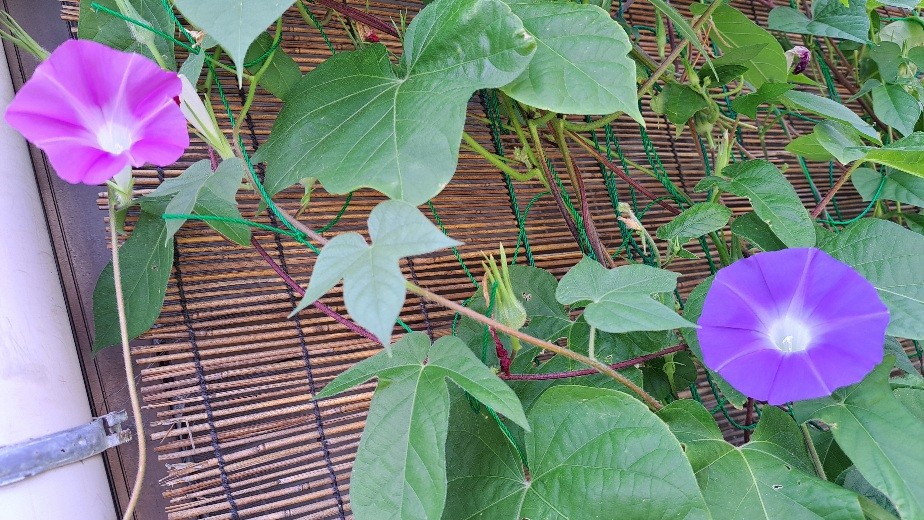 雨が続いて水やりはさぼっていたけど、それなりに成長していた 去年のアサガオの種なのだけど、なかなか元気 ど…