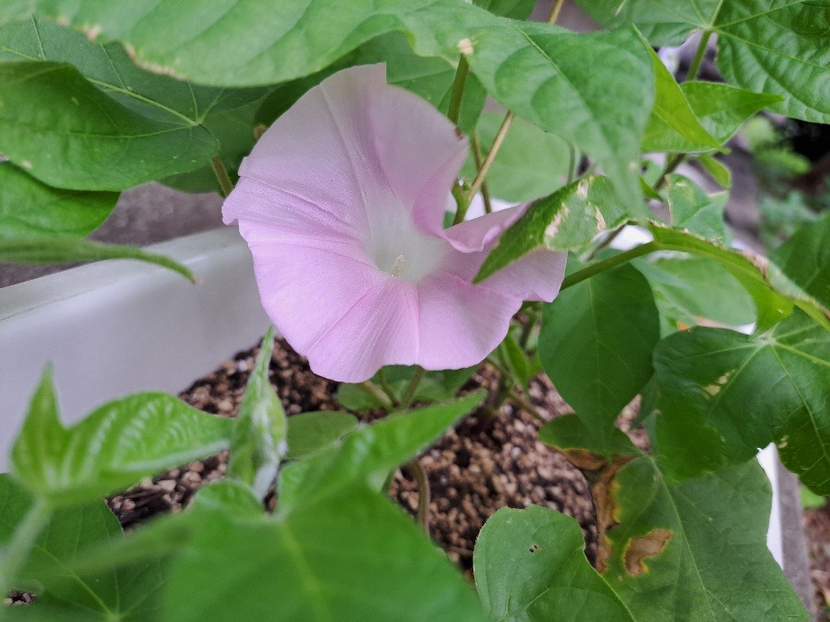 雨が続いて水やりはさぼっていたけど、それなりに成長していた 去年のアサガオの種なのだけど、なかなか元気 ど…