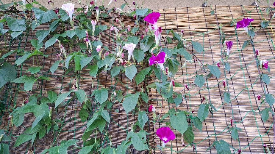 しぼんだアサガオのほうが目立つけど、今日もまあまあ、十数個かな。