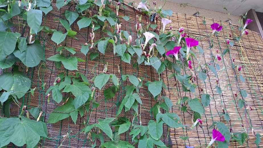 しぼんだアサガオばかりだけど、何個か咲いてはいる