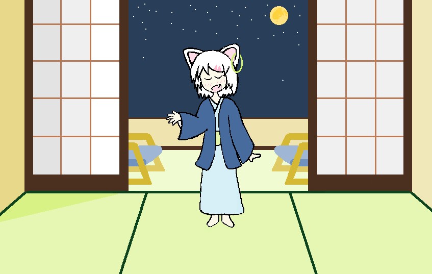 背景の旅館を自分にしては上手く描けて喜んだ思い出。