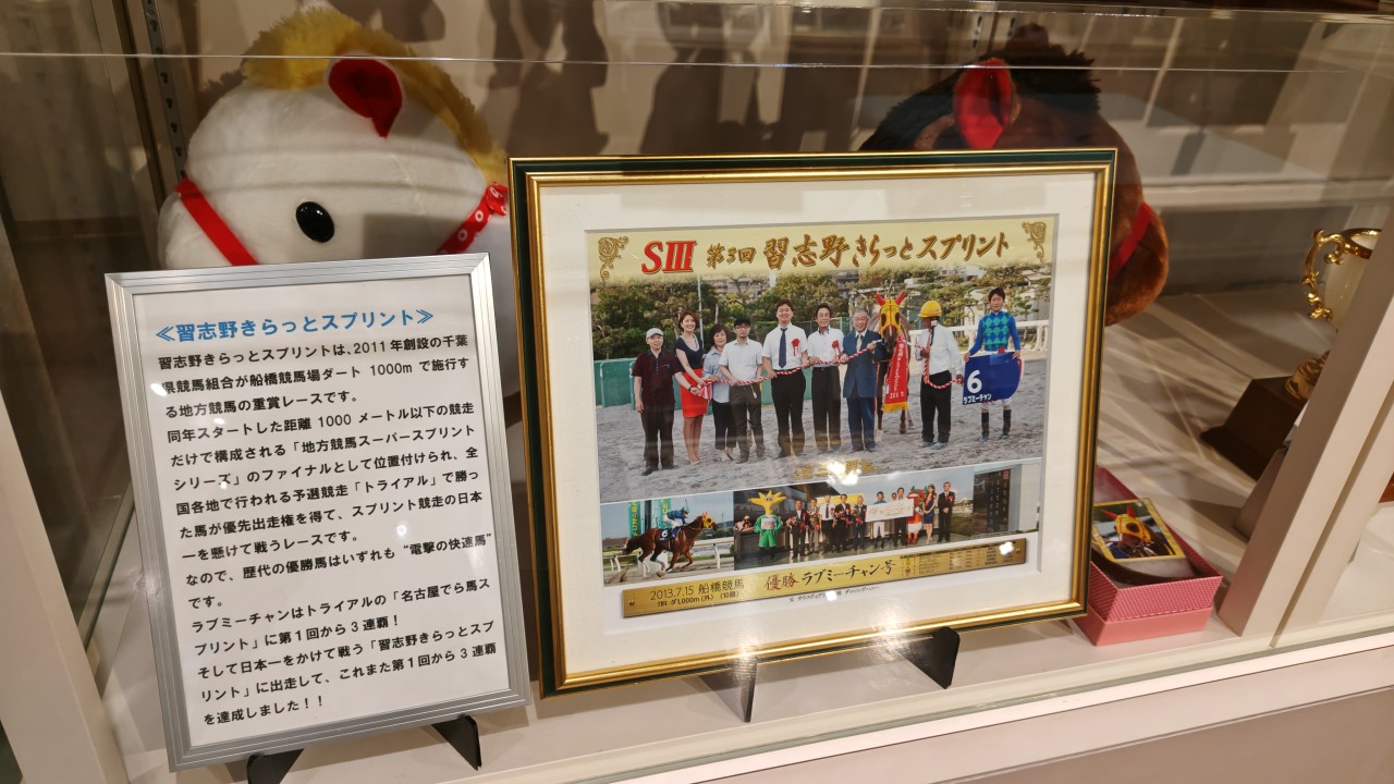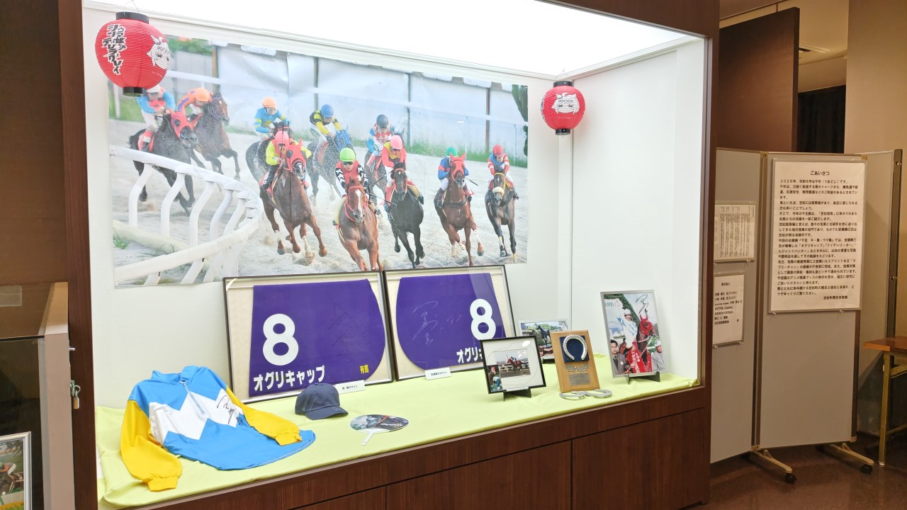 笠松競馬場に縁のあるオグリキャップやラブミーチャンなどの名馬たちの思い出の品々を多数展示してました。