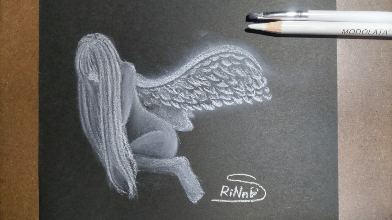 天使です。片翼じゃなくて両翼のある天使です。これは白鉛筆画とスクラッチアートでリベンジしたく存じます。