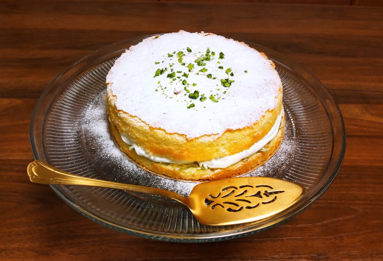 焼きたてだと柔らかすぎるのでこちらも少し冷まし、生クリームと出来立てのレモンジャム2種類を半分ずつ塗ってヴィクトリアサンドイッチ完成。