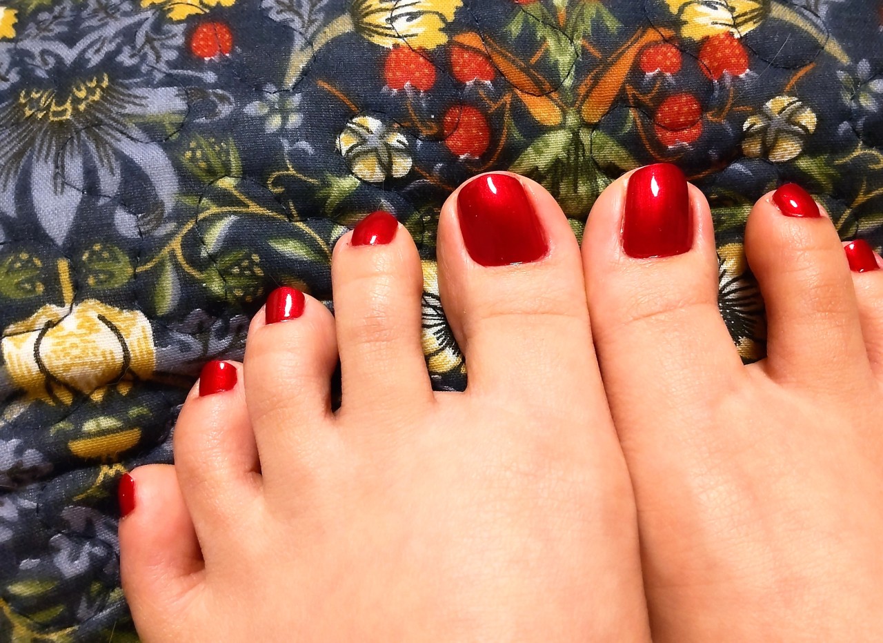 鮮やかなメタリックレッドなのに適度に深みがある深紅で、ペディキュアにすると気分が上がる。