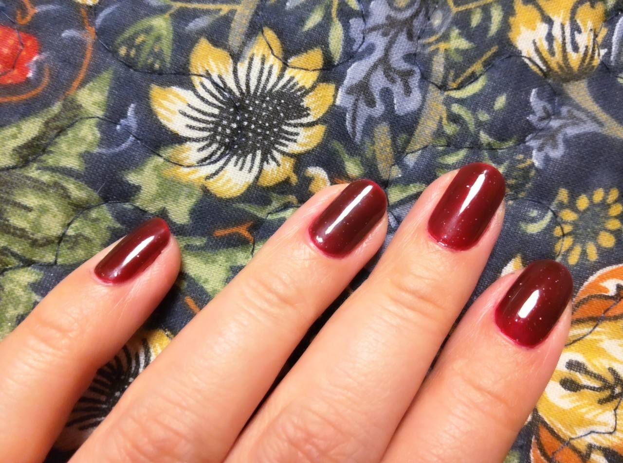 ガーネットモチーフにしてはちょっと紫みが強い暗い色だったので、シアーさを活かしてベースにNAIL HOLICのRD408を塗ってダークレッドにしてみた。
