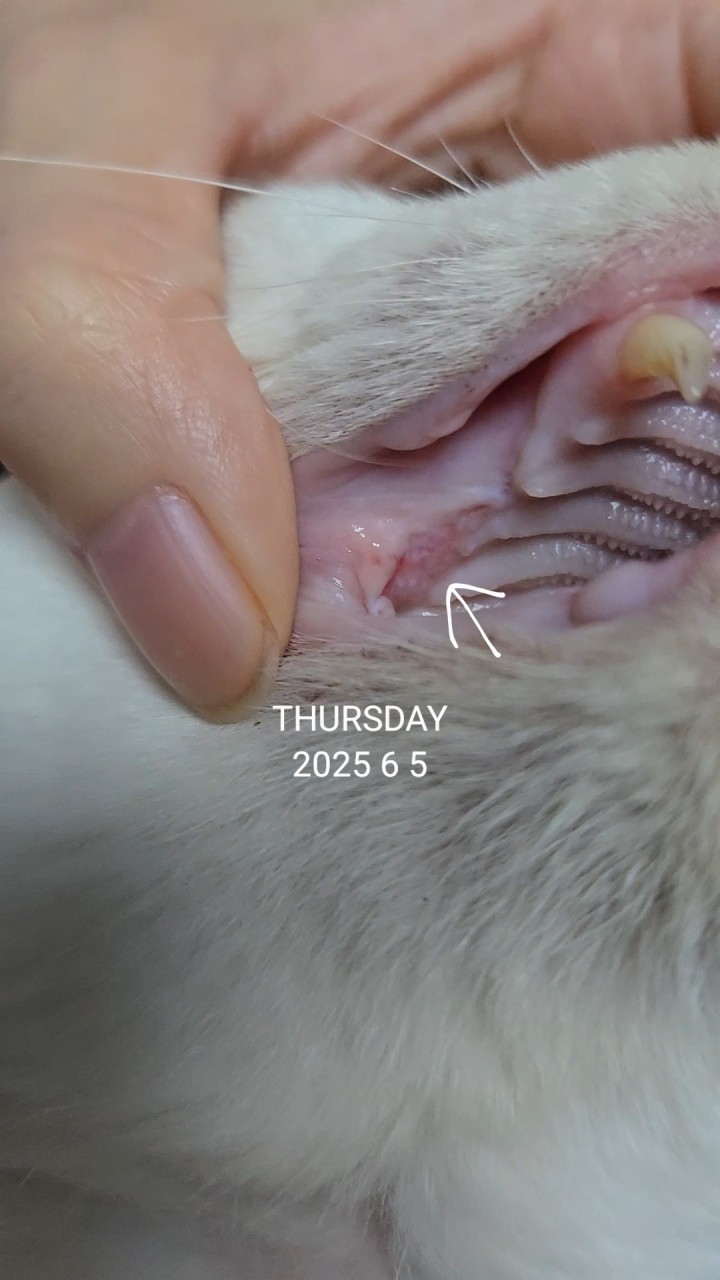 上下奥歯を一昨年・去年に抜歯してから口臭が消えたラウちゃん。ふと今日の朝に口臭がして、気になって口を開いたら右奥上部が赤くなってた。母に手伝ってもらいつつ動画撮影したり写真撮ったり。