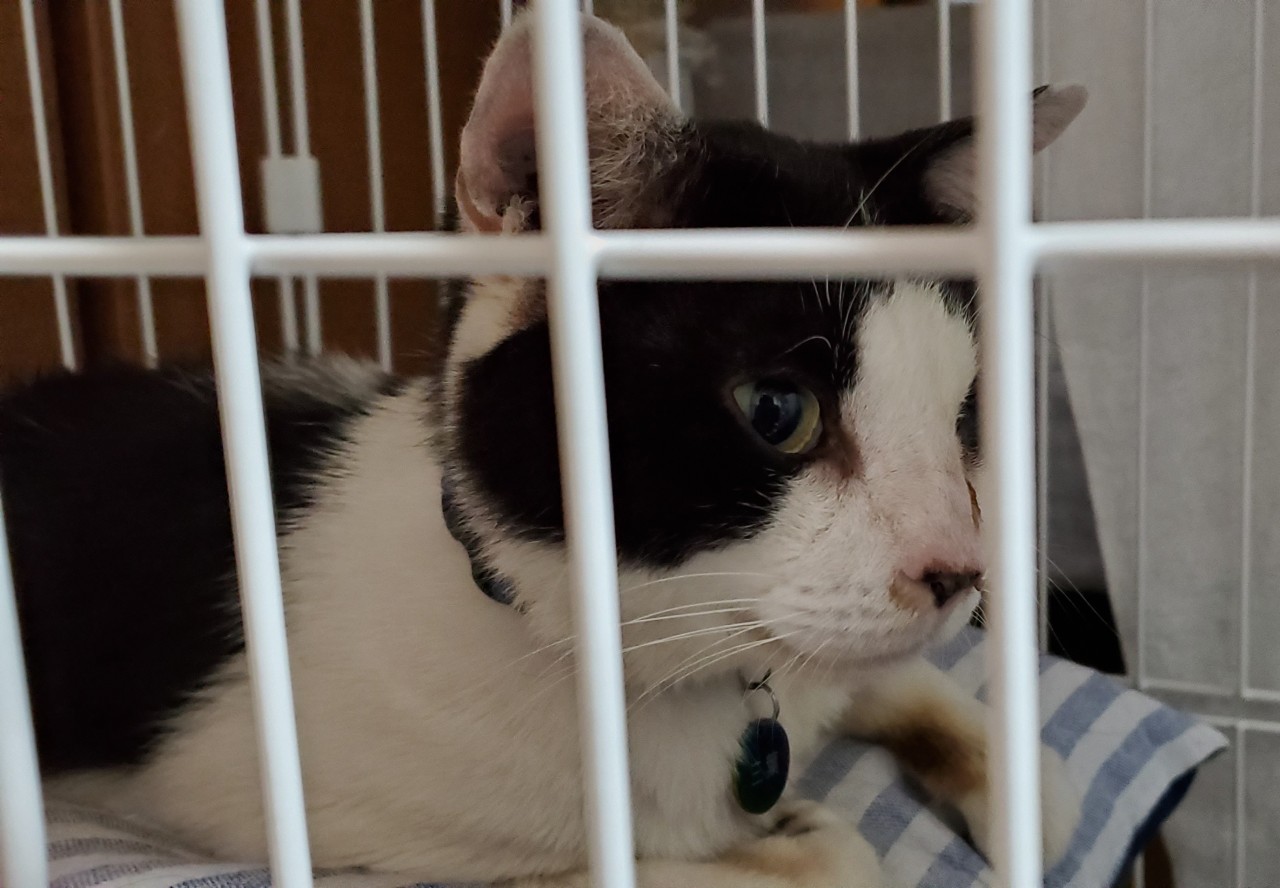 左目が外傷で無くて隻眼。先生曰く「カラスにつつかれたのかも」だそう。野良猫だもんね……。てっきり目薬で治ると思ってたので驚いた。完治はしなくて対症療法らしい。落ち着いても再発したら投薬を繰り返す。放置してたら膿んで酷いことになるとの事で、そうなる前に保護出来てよかった。