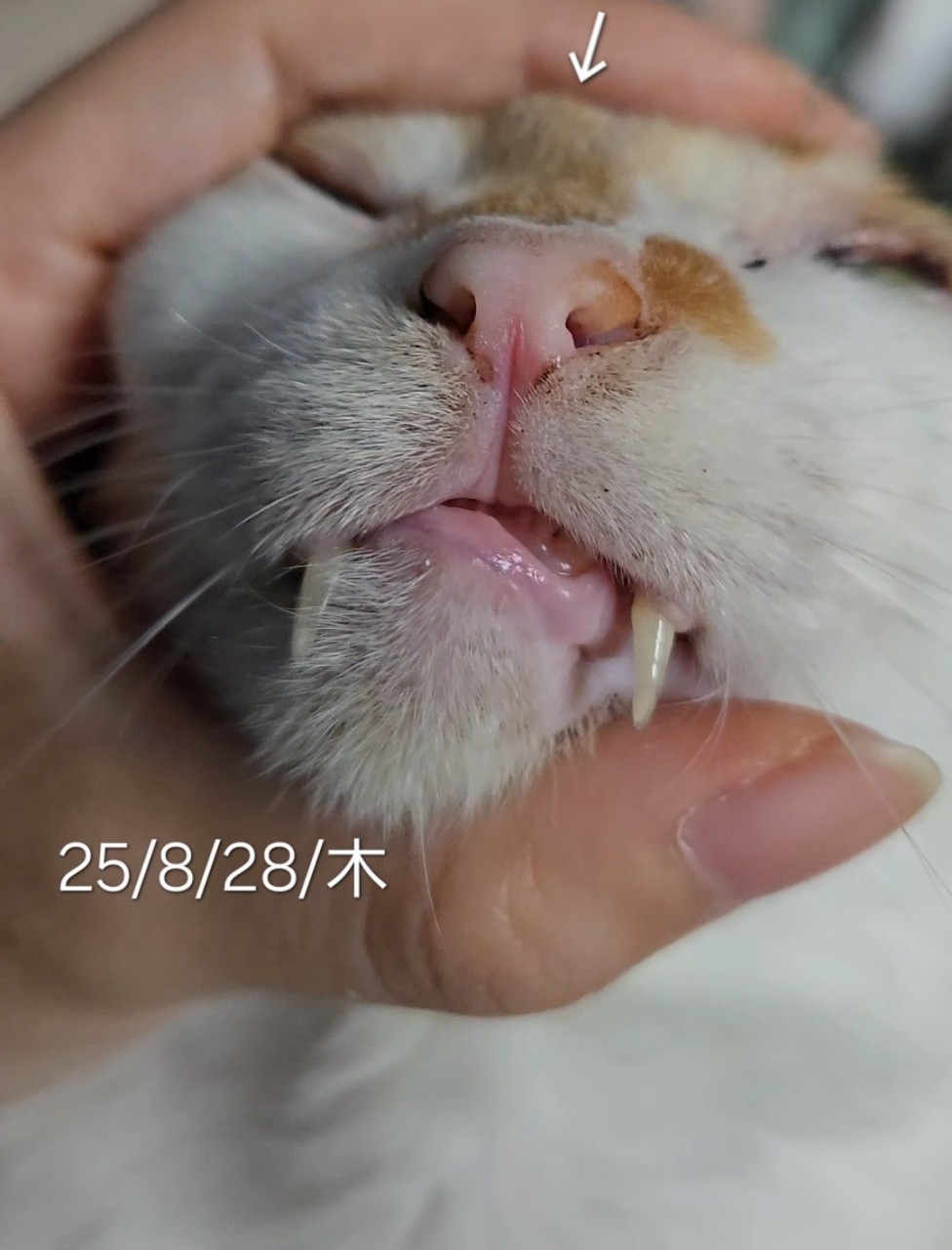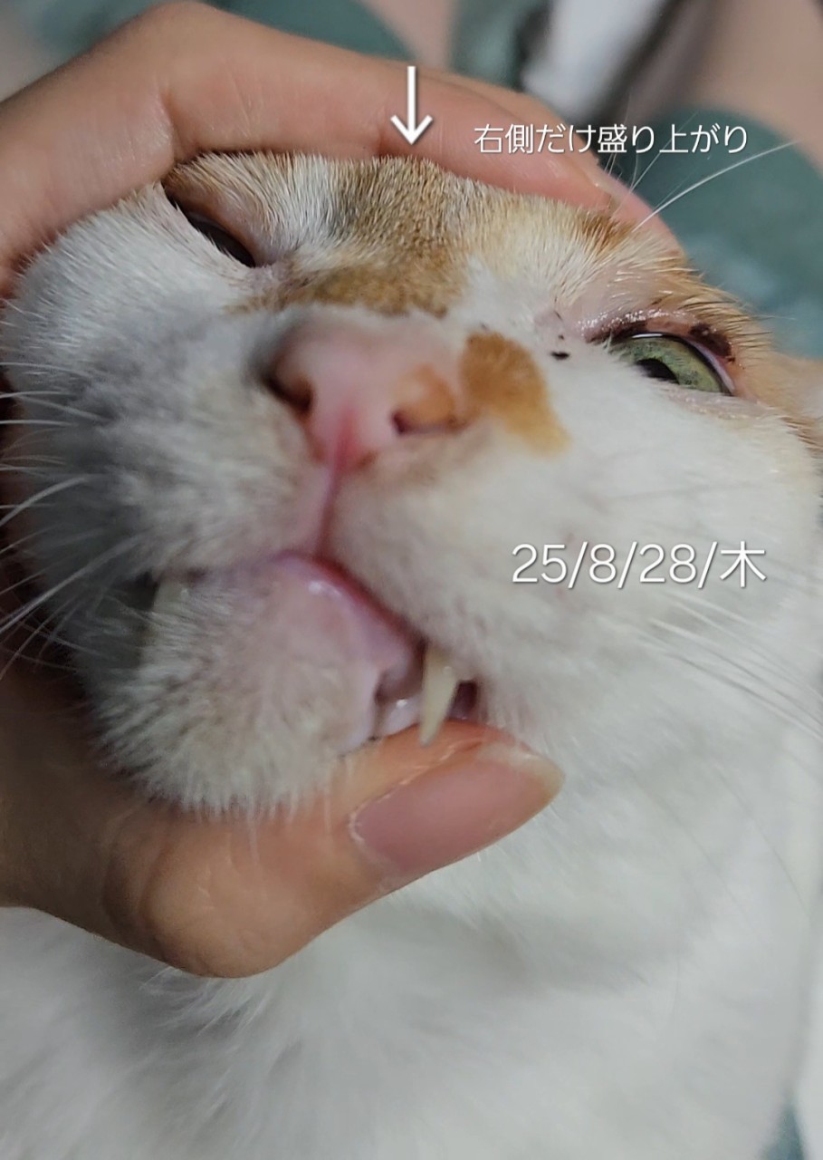 8/28(木)にふとラウちゃんの頭を撫でてたら、硬い盛り上がりを察知。縦長。左右にある。
