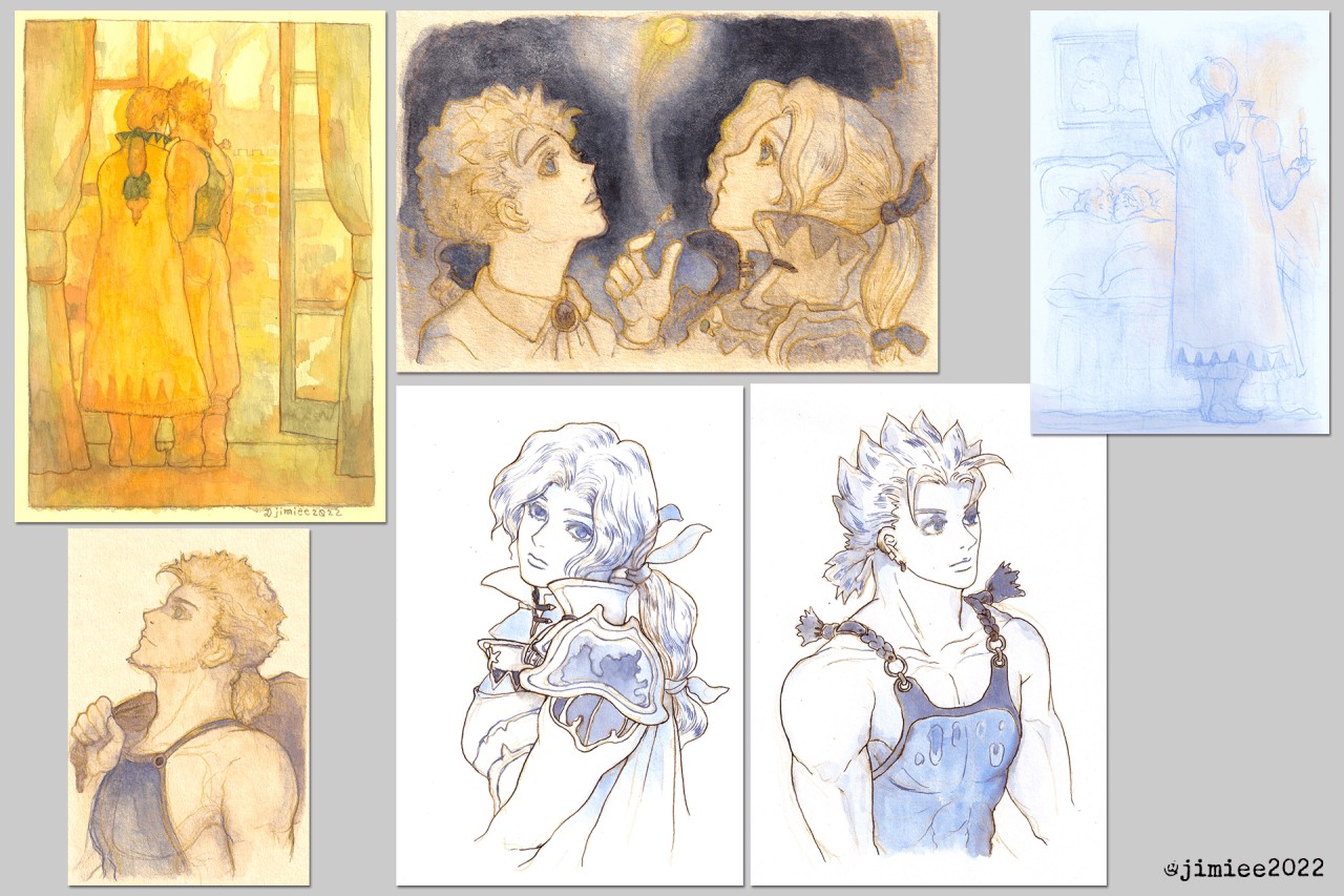 Xったーのタグ企画「フォロワーさんの推しを描きたい」で描いた水彩絵各パーツのログ・2です。 FF6 ガウ FF5 エクスデ…