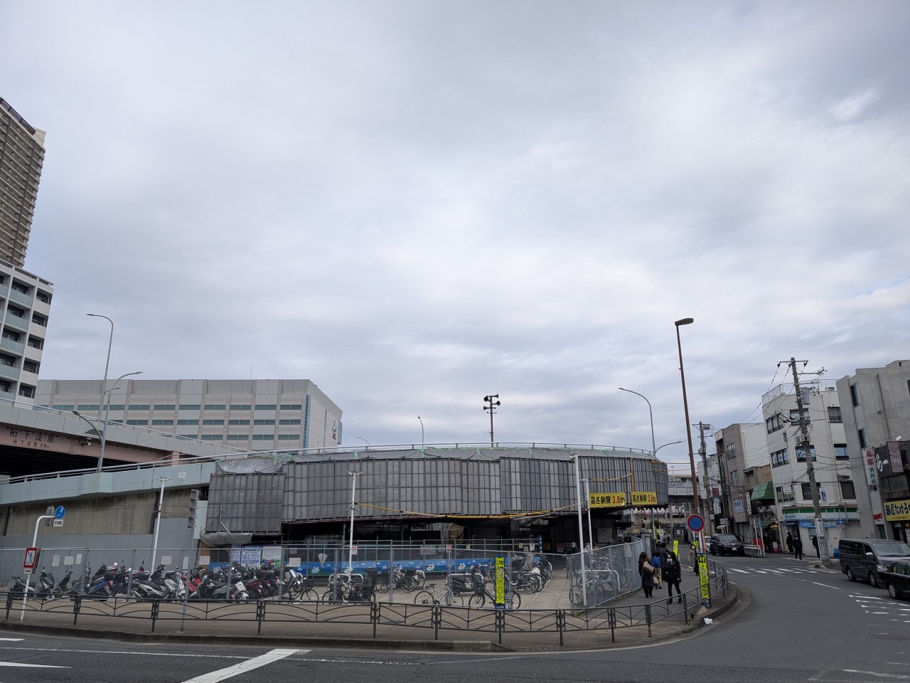 今朝の新子安駅付近