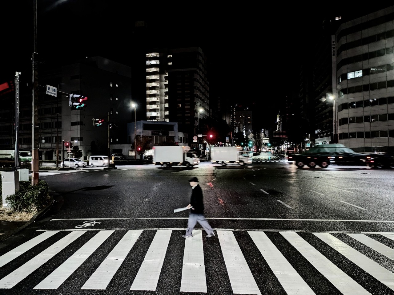 今朝の新川橋交差点付近