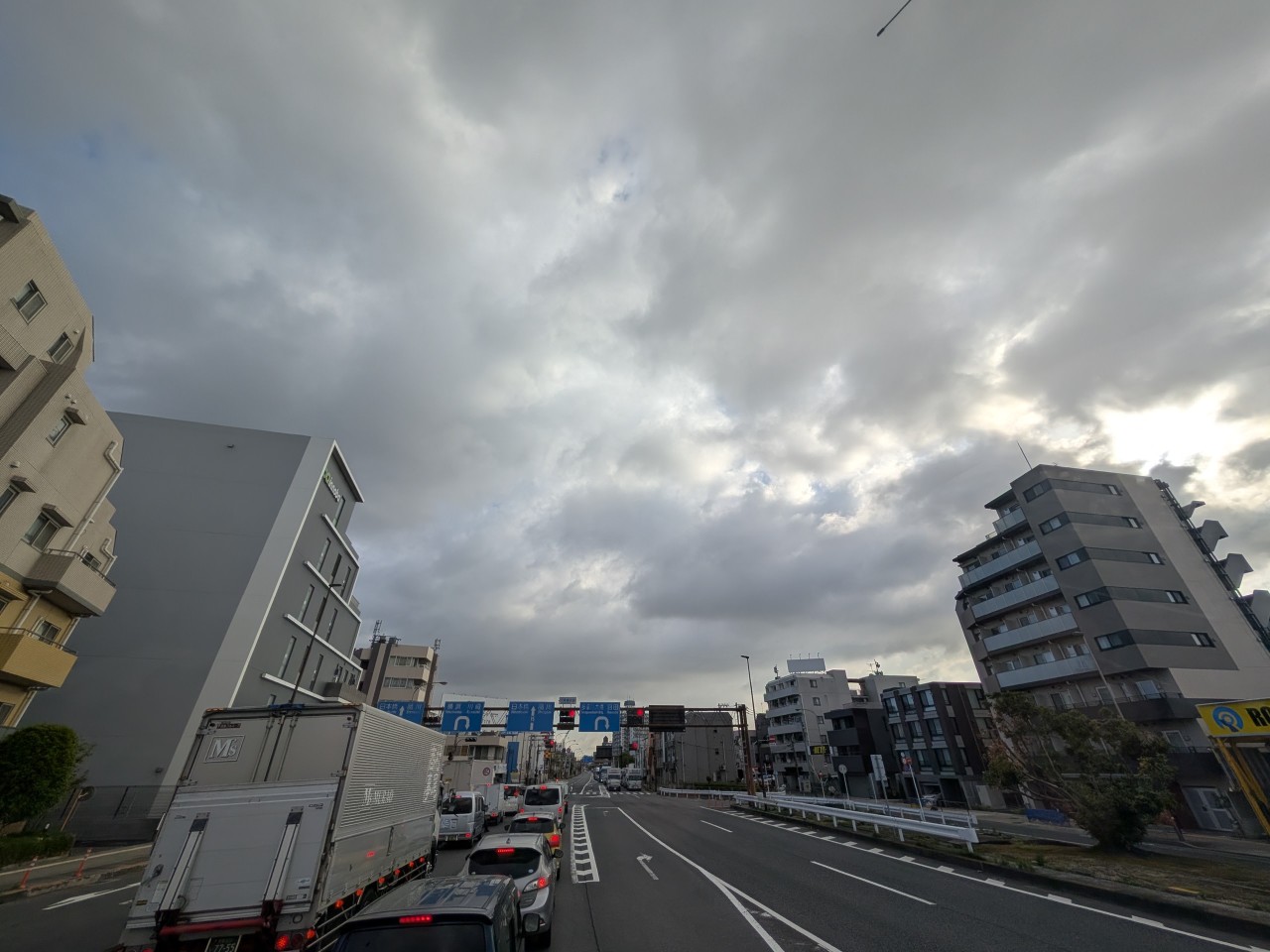 今朝の六郷橋北詰交差点付近