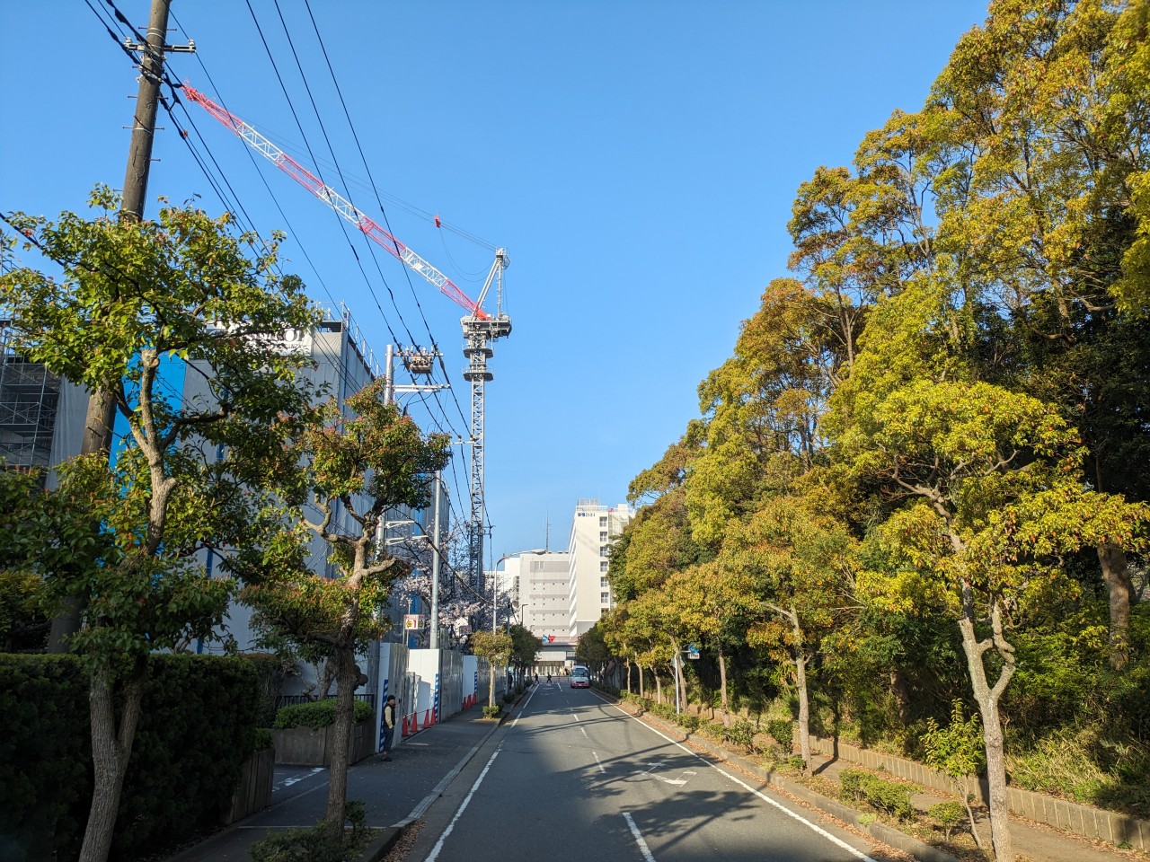 よく見たら工事現場の中に少し桜あるね♪