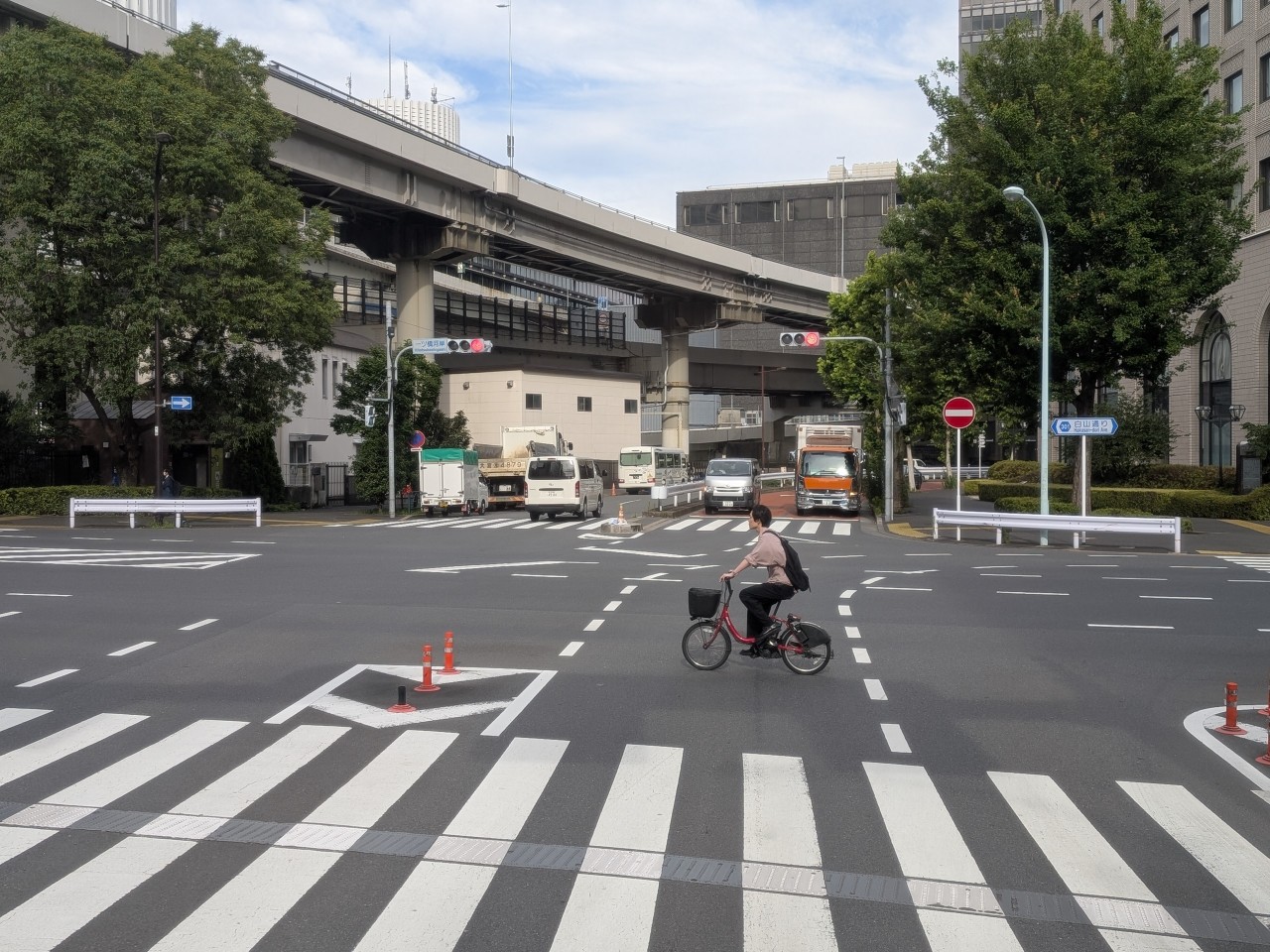 今朝の一ツ橋河岸交差点付近
