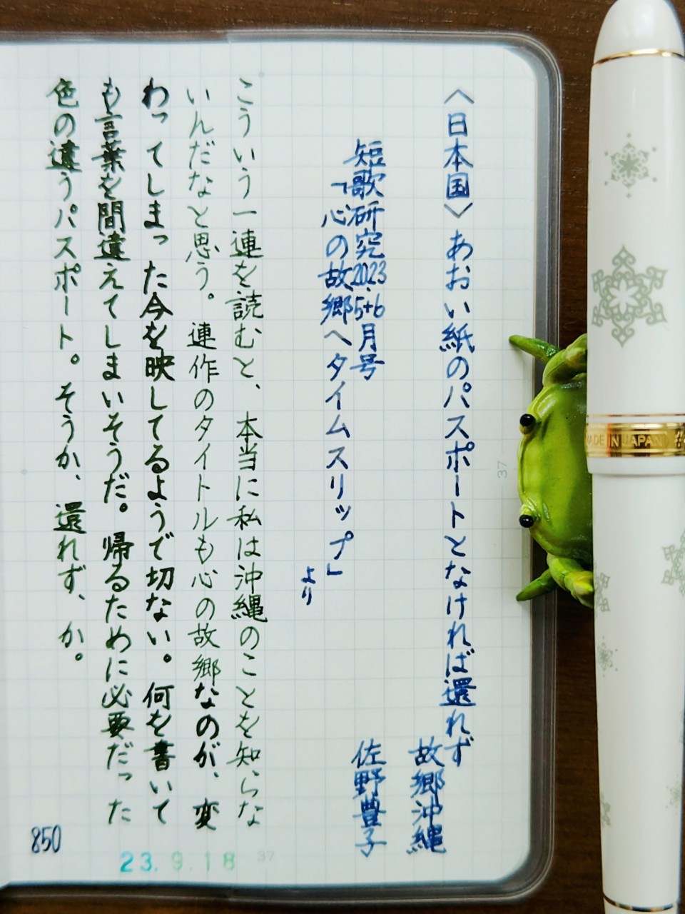 [今日の短歌/佐野豊子]〈日本国〉あおい紙のパスポートとなければ還れず故鄉沖縄