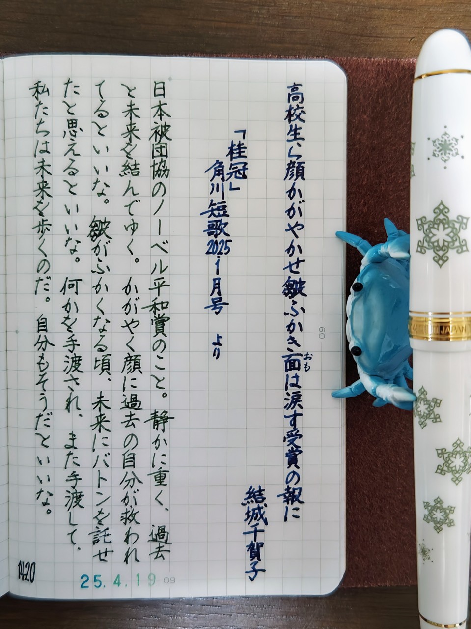 高校生ら顔かがやかせ皺ふかき面(おも)は涙す受賞の報に/結城千賀子