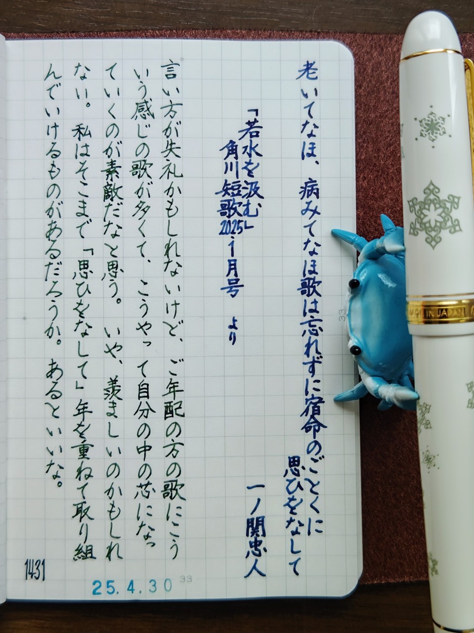 [今日の短歌/一ノ関忠人]老いてなほ、病みてなほ歌は忘れずに宿命のごとくに思ひをなして