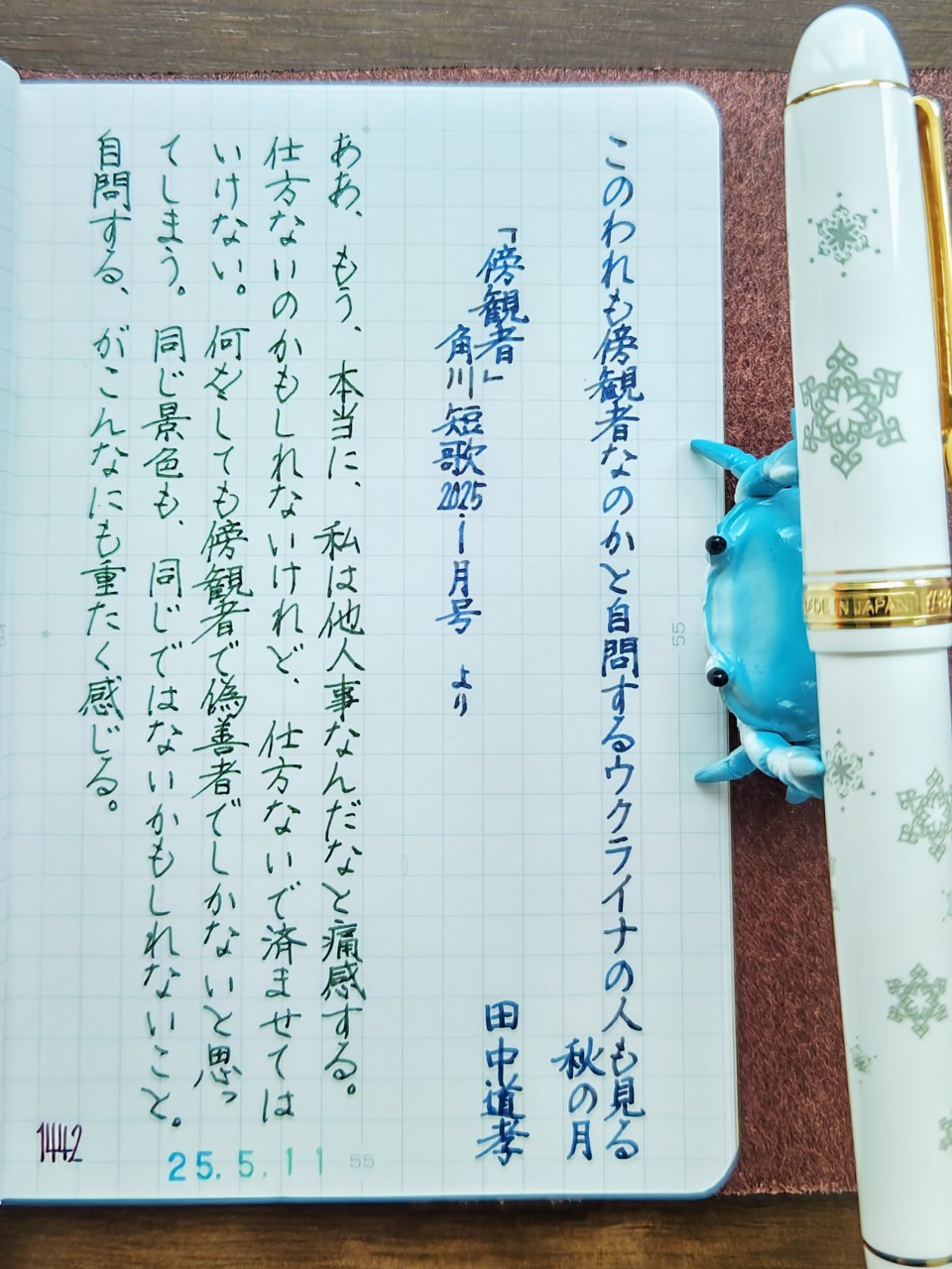 [今日の短歌/田中道孝]このわれも傍観者なのかと自問するウクライナの人も見る秋の月