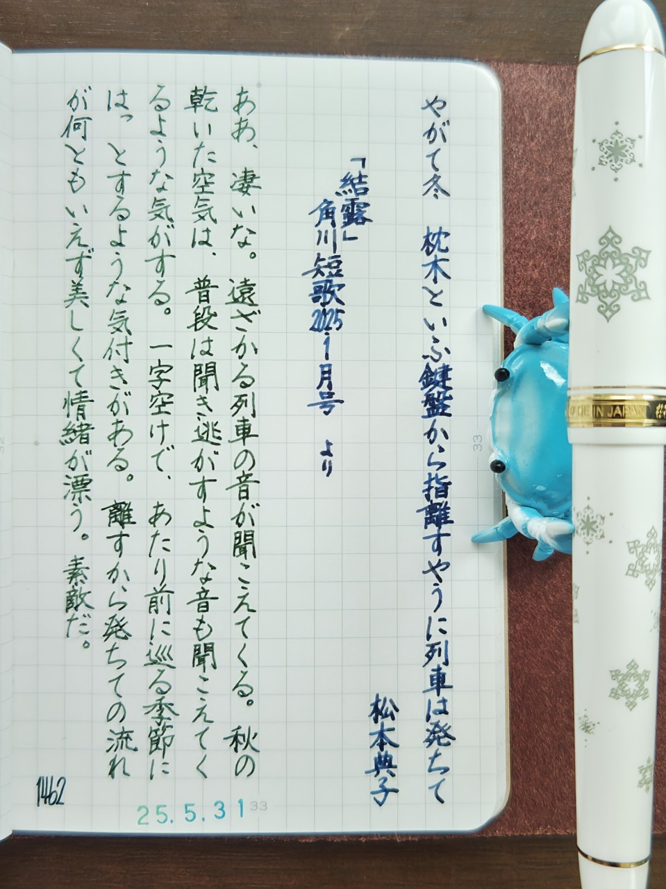 やがて冬 枕木といふ鍵盤から指離すやうに列車は発ちて/松本典子